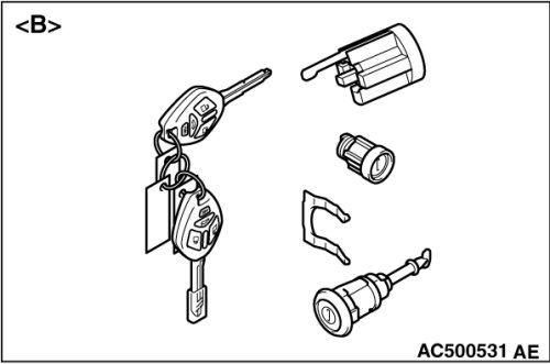 - When adding the ignition key separately, or replacing the components by the steering lock cylinder of illustration[ A] (the ignition key is simultaneously supplied) or the key set of illustration[ B], register the encrypted code. Encrypted Code Registration Criteria Table.