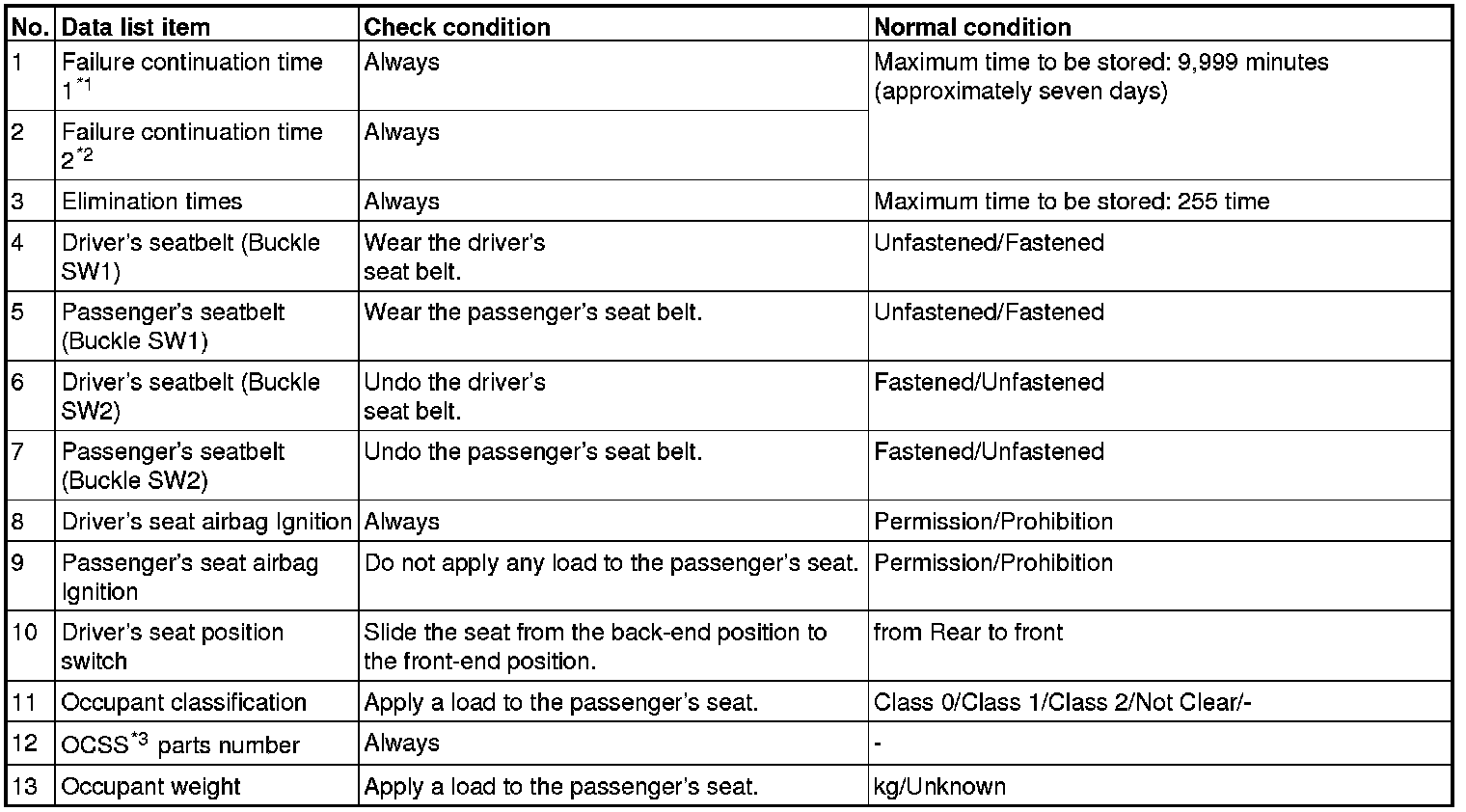 The following items can be read by the scan tool from the SRS-ECU input data.