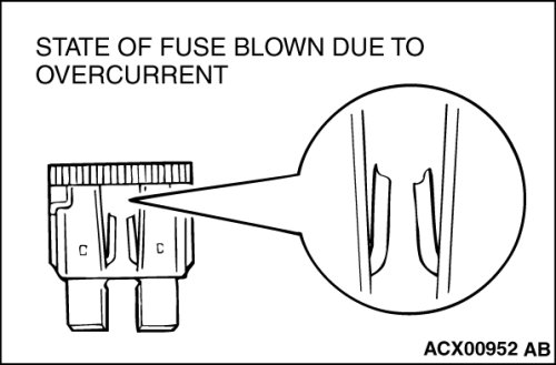 When a fuse is blown, there are two probable causes. One is that it is blown due to flow of current exceeding its rating. The other is that it is blown due to repeated on/off current flowing through it. Which of the two causes is responsible can be easily determined by visual check as described below.