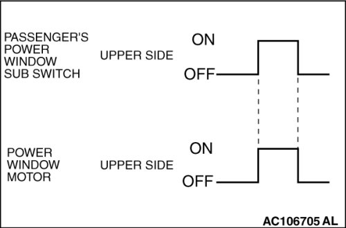 When the power window sub switch is pulled up, the system energizes its respective power window motor, and then the passenger's window glass rises.