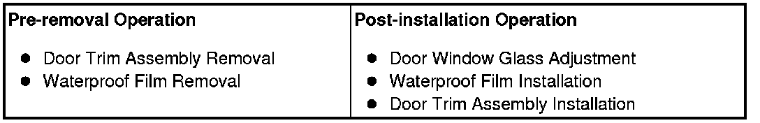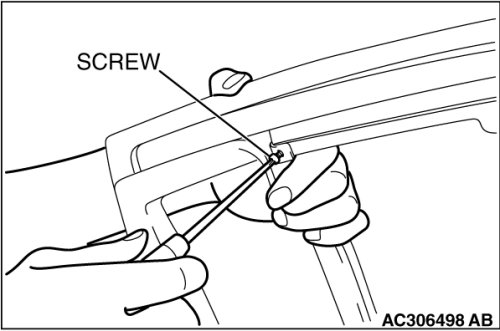 If tinting film is adhered to the door window glass, attach special tool MB990480 to the outside of the glass to prevent the film from peeling off.