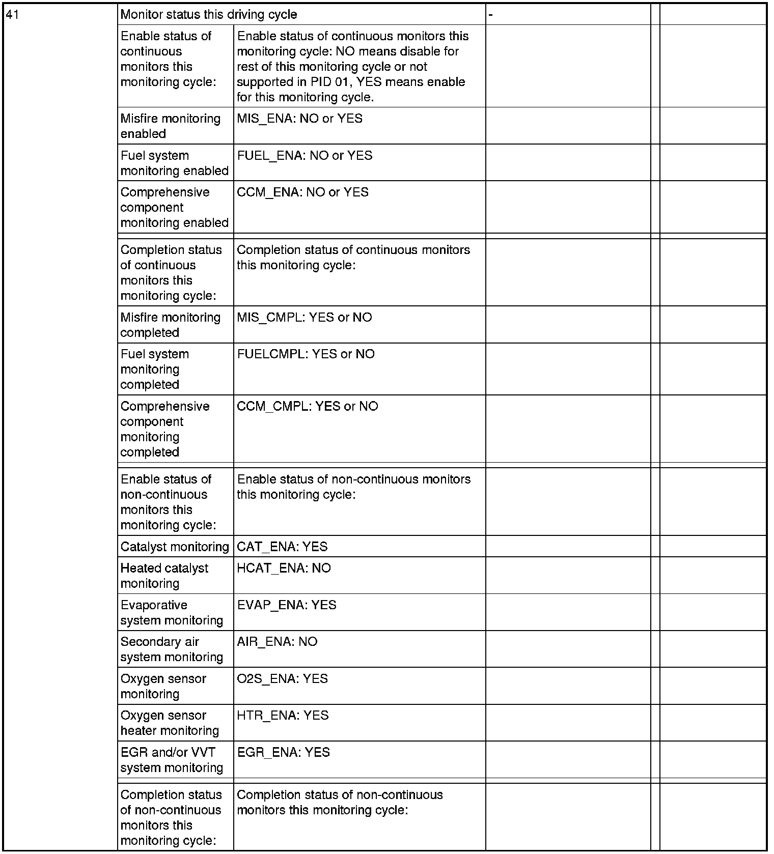 General Scan Tool (GST) Mode 01 Reference Table
