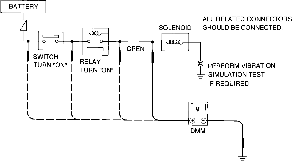 In general testing electrical circuits is an easy task if it is approached in a logical and organized method. Before beginning it is important that you have all available information related to the system you are going to test. You should also have a thorough understanding of how the system operates so that you use the appropriate test procedure and equipment.While testing electrical components, if the incident is reported as intermittent, it may be necessary to gently shake the wiring harness or electrical component to simulate vehicle vibrations.