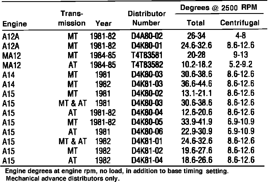 Fig. 1 Distributor Timing Advance Specifications: