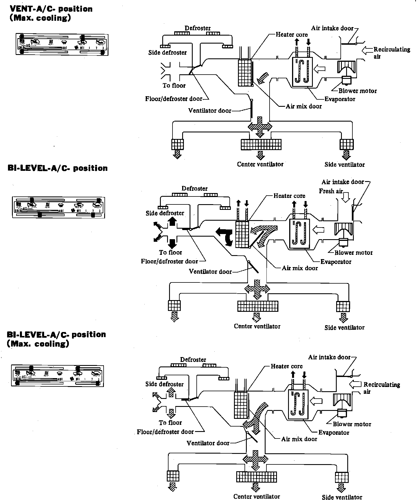 Fig. 7 Air flow & A/C operation: