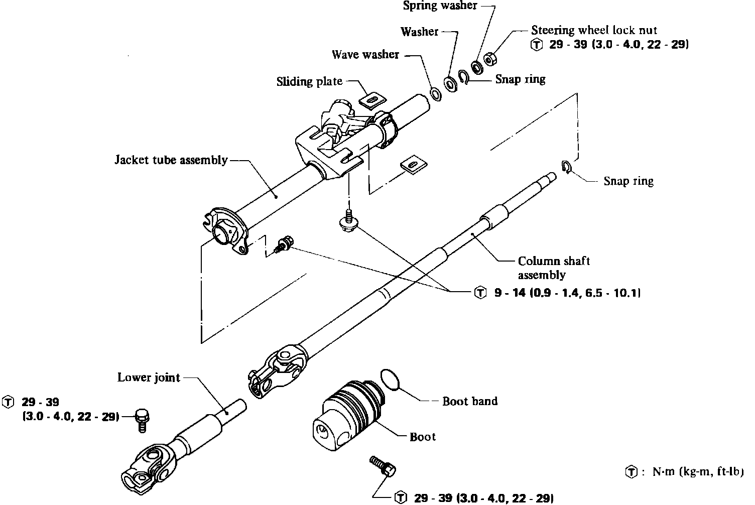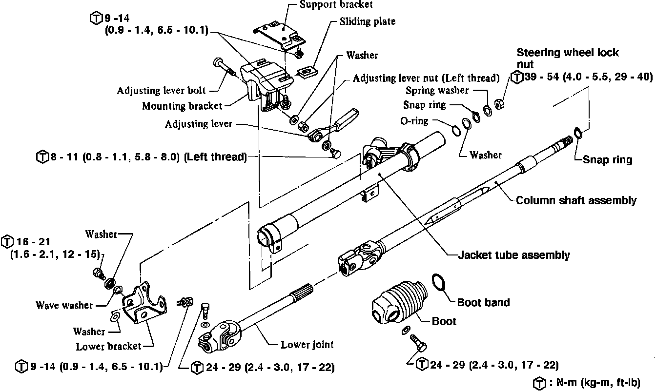 Fig. 9 Exploded view of steering column. 1984-86 Sentra less tilt wheel: