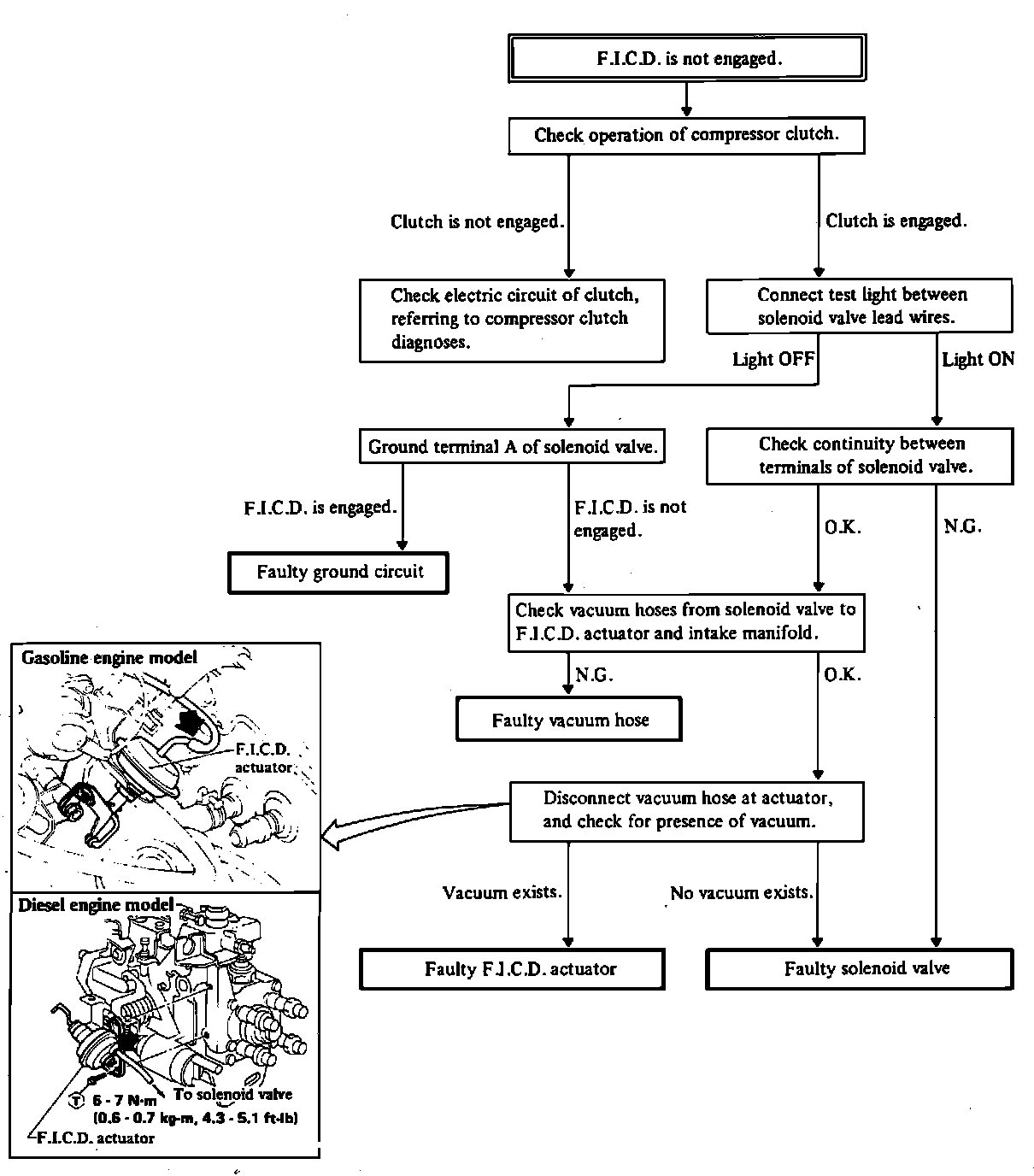 Fig. 40 Manual Heater & A/C diagnosis, Fast Idle Control Device (F.I.C.D.).: