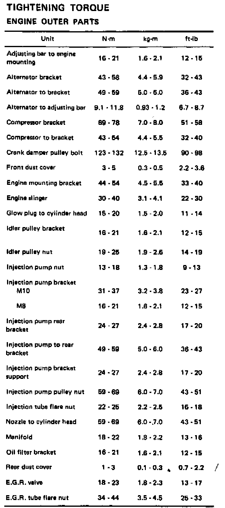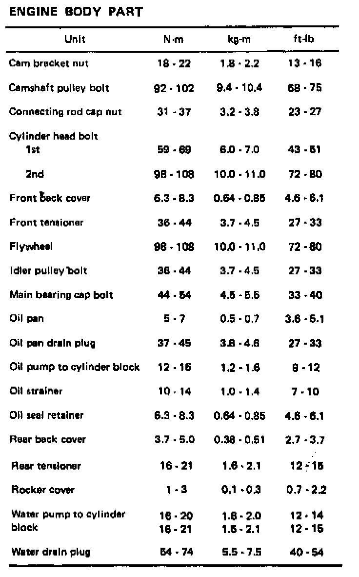 Torque Chart (Cont.):