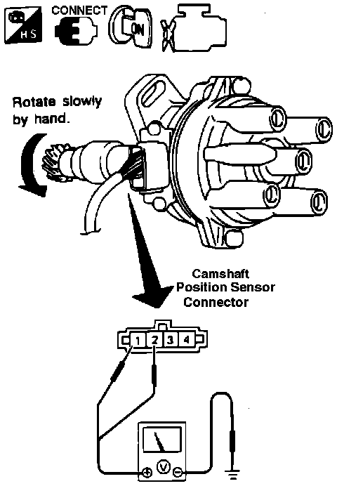 4. Using a volt meter, check voltage between terminal 2 and ground while rotating it slowly.