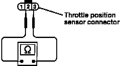 2. Using an ohm meter, check resistance across sensor terminals 2 and 3 changes while opening throttle valve manually.