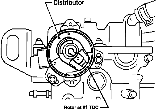 2. Install the distributor, making sure the rotor is aligned as shown when fully seated.