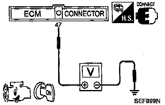 3. Check the voltage between Engine Control Module (ECM) terminal 47 and ground.