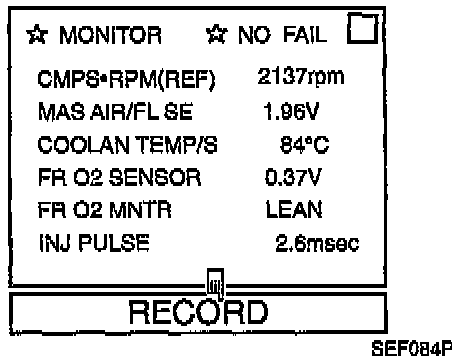 2. Select "MANU TRIG" and "HI SPEED" in "DATA MONITOR" mode with CONSULT, and select "FRO2 SENSOR" and "FRO2 MNTR".