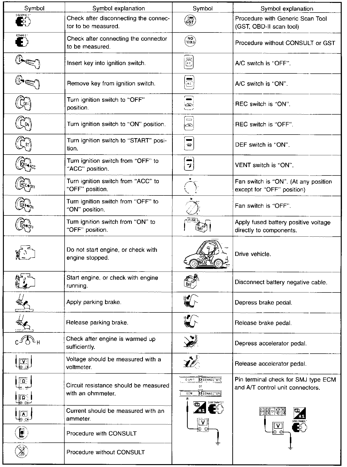 Key To Symbols Signifying Measurements Or Procedures: