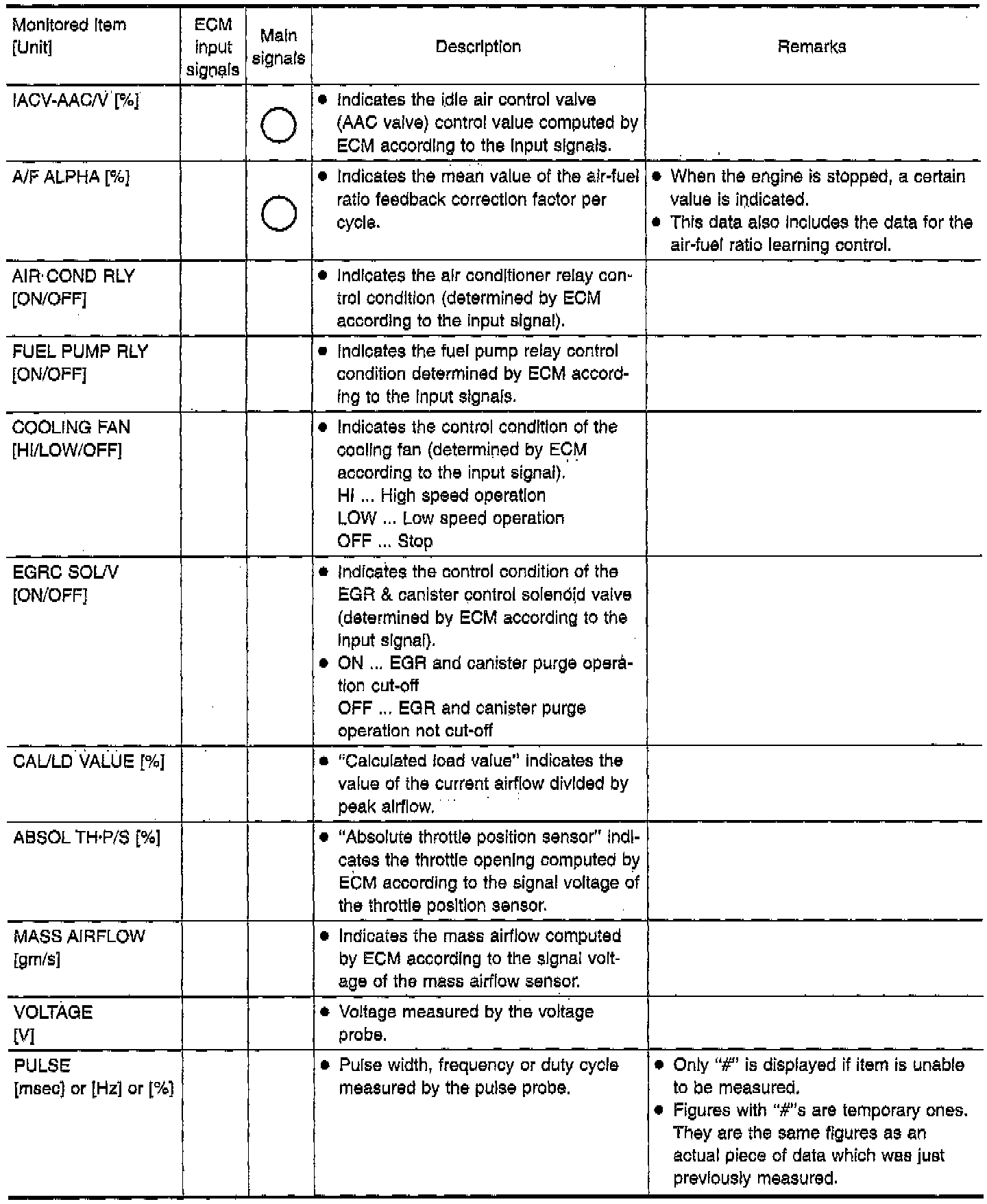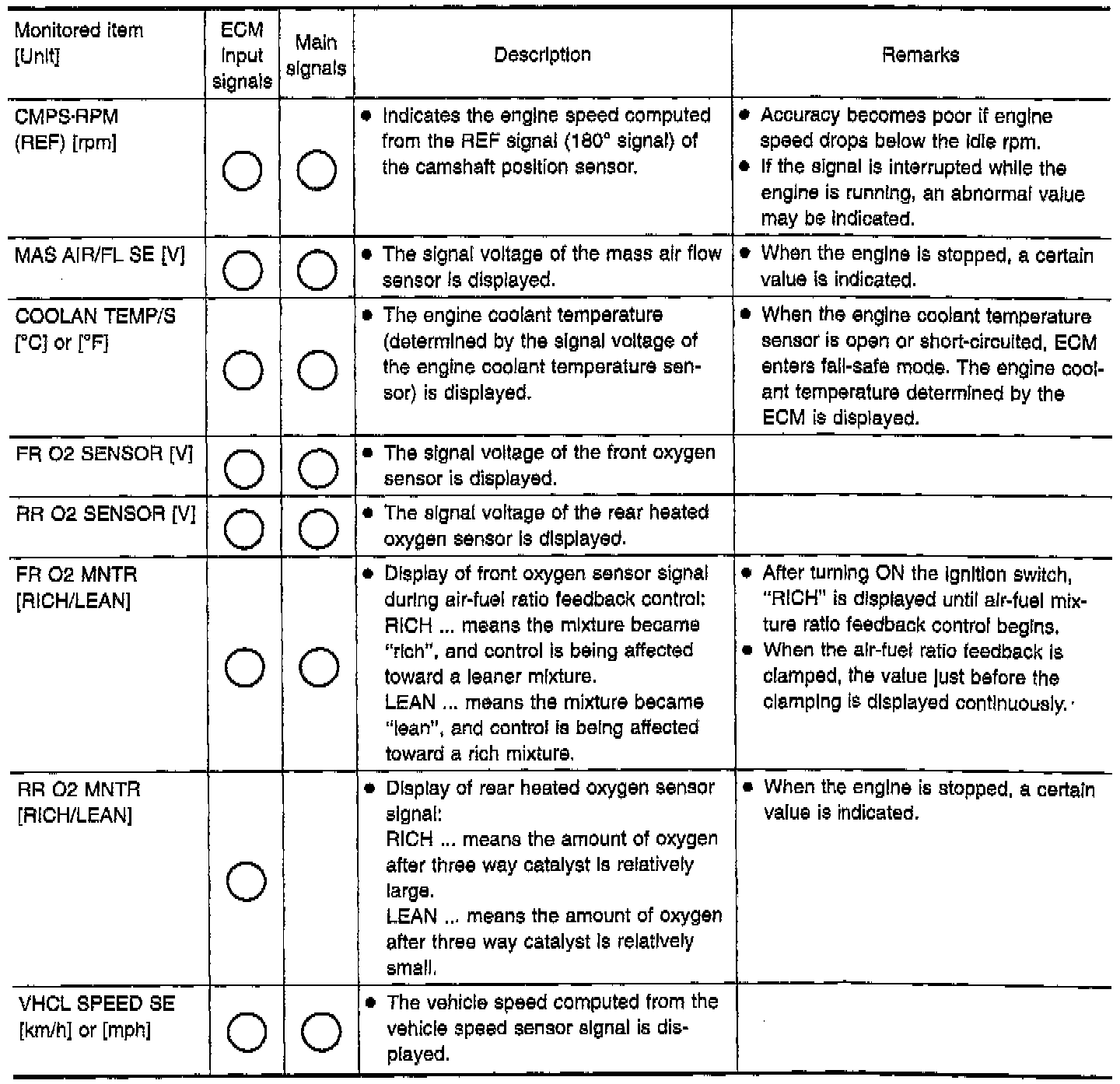 In other words, Diagnostic Trouble Code (DTC) and malfunction item will be displayed at the moment the malfunction is detected by Engine Control Module (ECM).