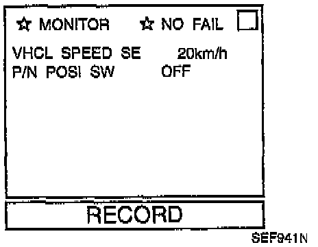 3. Read vehicle speed sensor signal in "DATA MONITOR" mode with CONSULT.