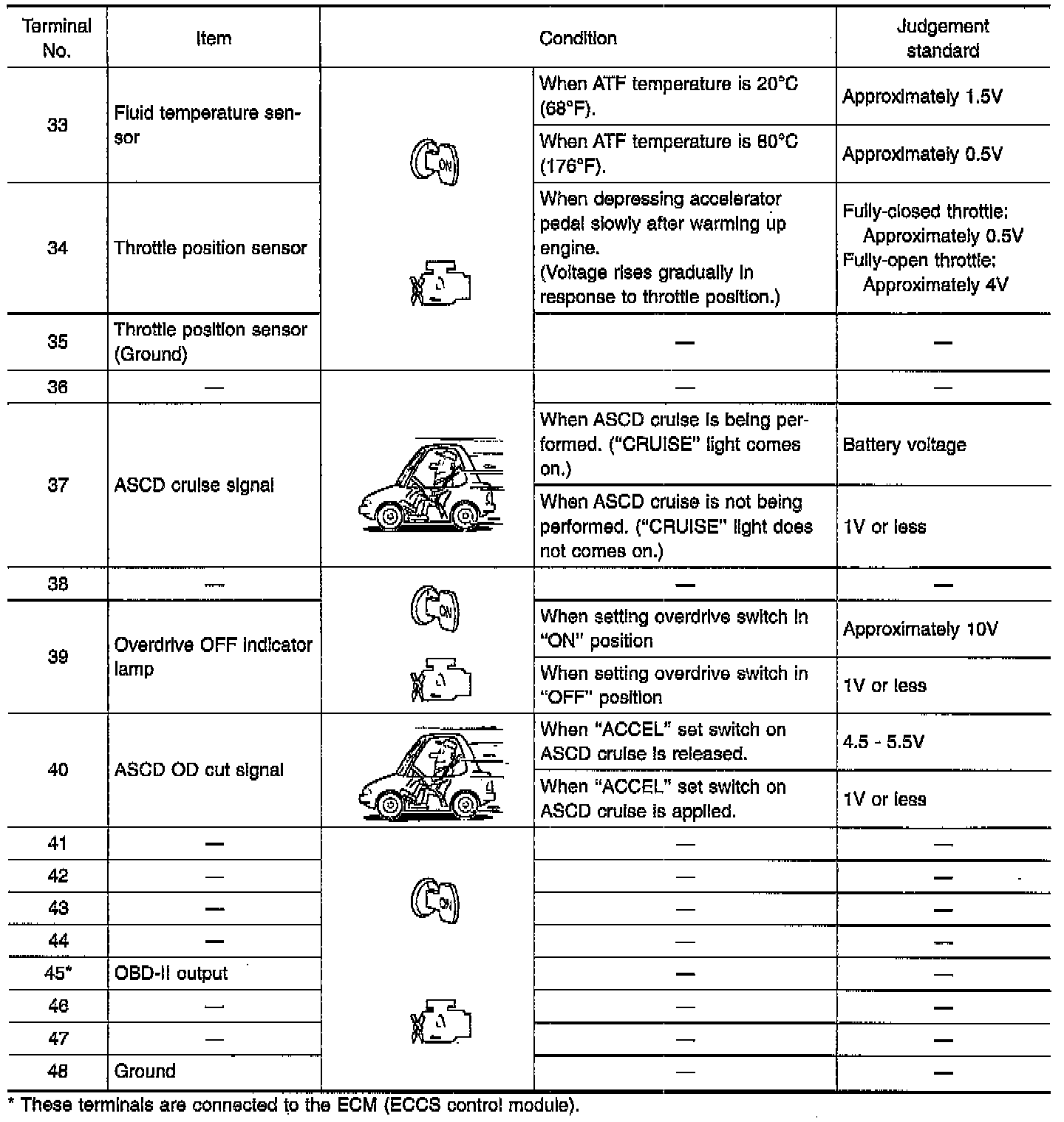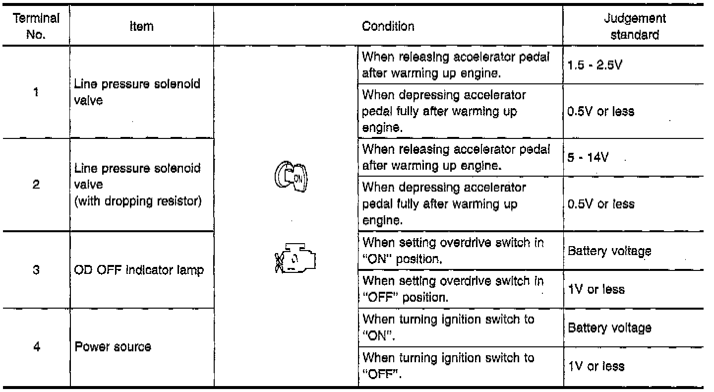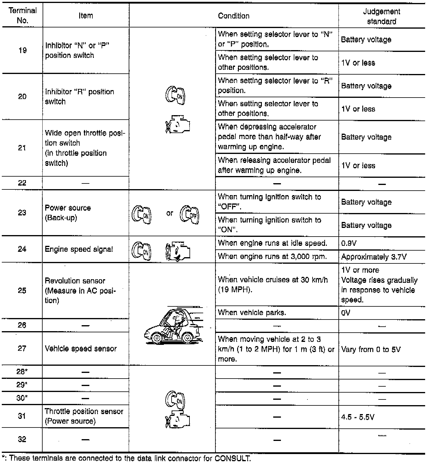 A/T CONTROL UNIT INSPECTION TABLE (DATA ARE REFERENCE VALUES.)