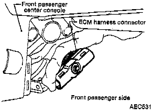 1. Engine Control Module (ECM) is located behind the center console. For this inspection remove the front passenger center console panel.