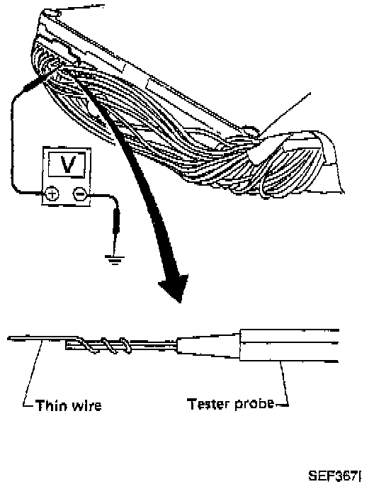 3. Perform all voltage measurements with the connectors connected. Extend tester probe as shown to perform tests easily.