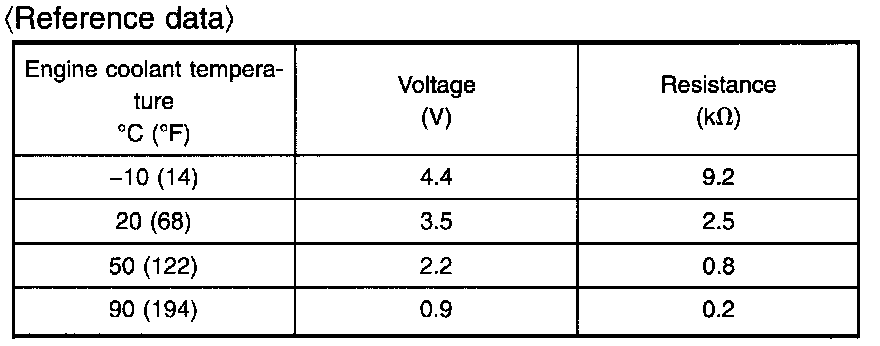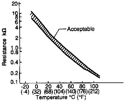 The engine coolant temperature sensor is used to detect the engine coolant temperature. The sensor modifies a voltage signal from the ECM. The modified signal returns to the ECM as the engine coolant temperature input. The sensor uses a thermistor which is sensitive to the change in temperature. The electrical resistance of the thermistor decreases as temperature increases.