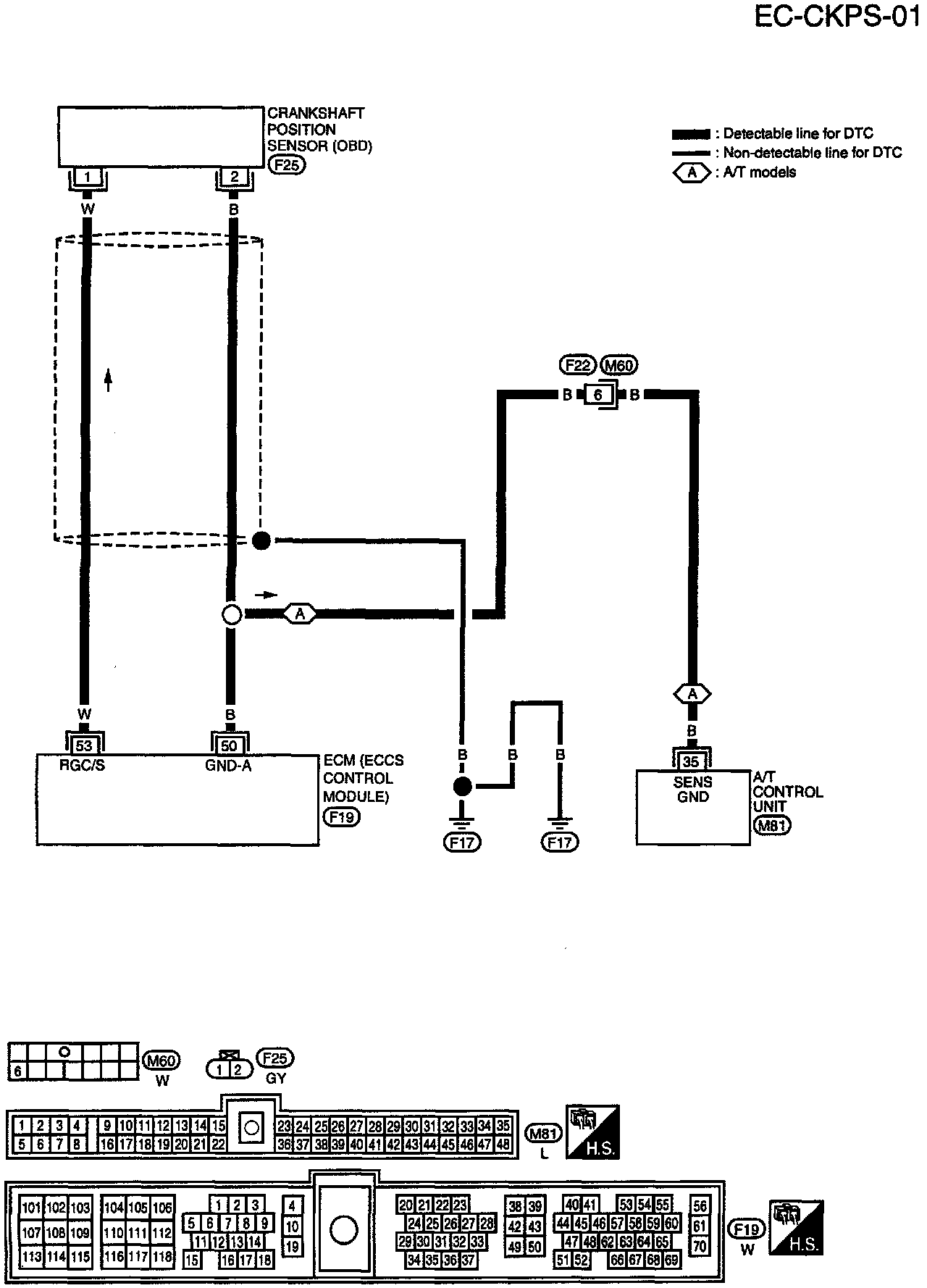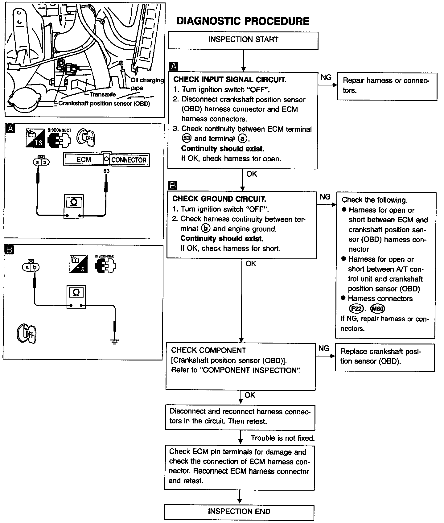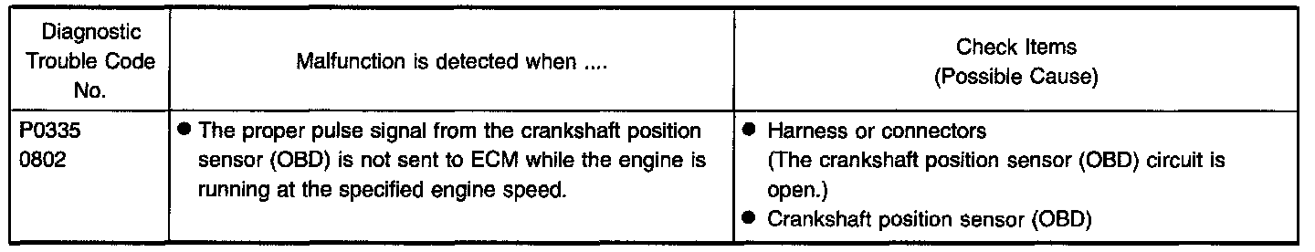 1. Disconnect crankshaft position sensor (OBD) harness connector.