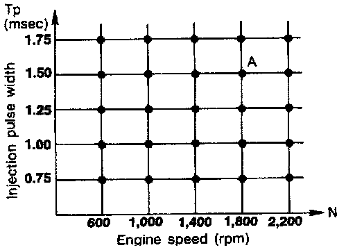 e.g. N: 1,800 rpm, Tp: 1.50 msec A °BTDC