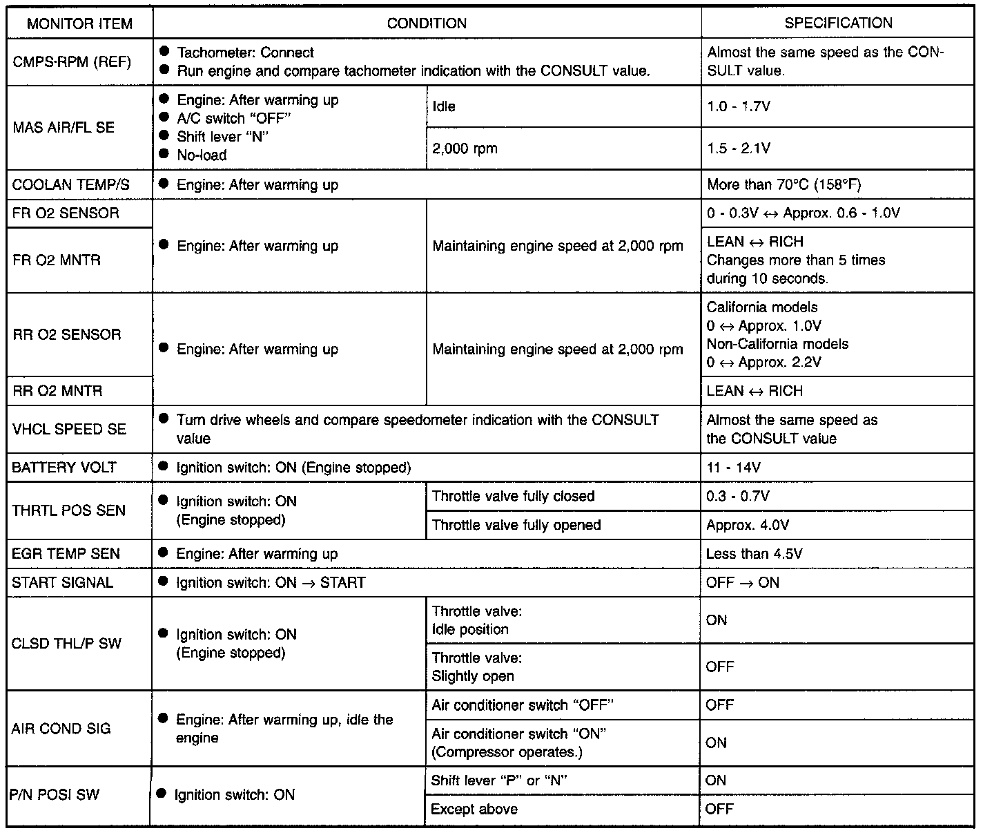 - Specification data are output/input values which are detected or supplied by the ECM at the connector.