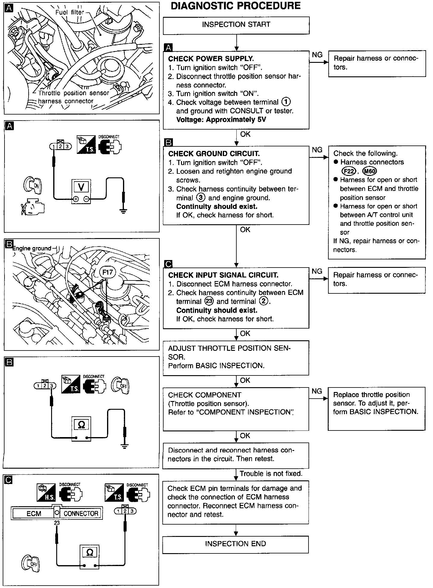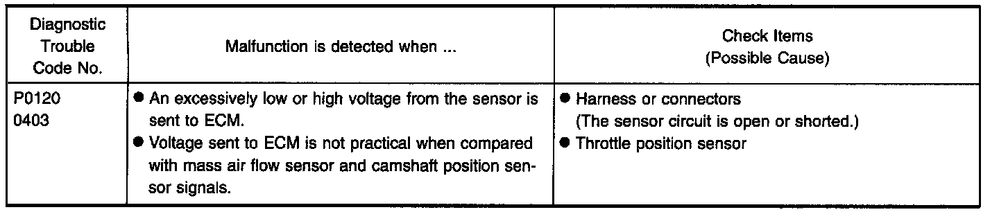 Idle position of the throttle valve is determined by the ECM receiving the signal from the throttle position sensor. This controls engine operation such as fuel cut. The throttle position sensor unit contains a built-in "Wide open and closed throttle position switch".