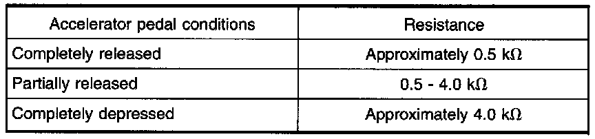 - The voltage when accelerator pedal fully released is 0.3 - O.7V.