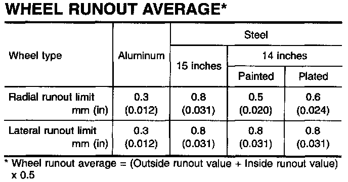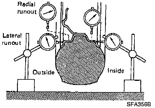 2. Check outside and inside wheel runout. Refer to illustrations.