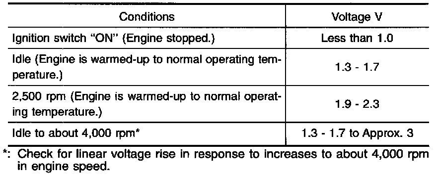 4. If the voltage is out of specification, disconnect mass air flow sensor harness connector and connect it again. Repeat above check.