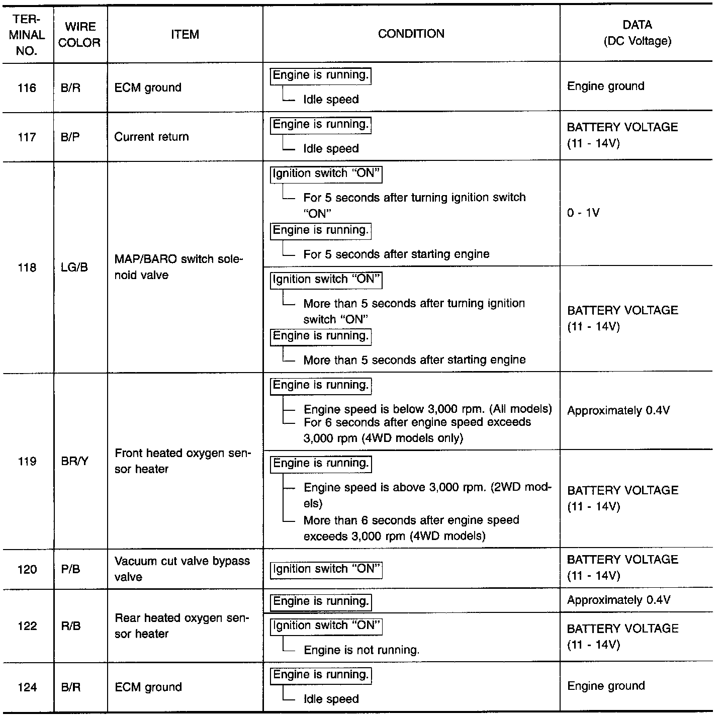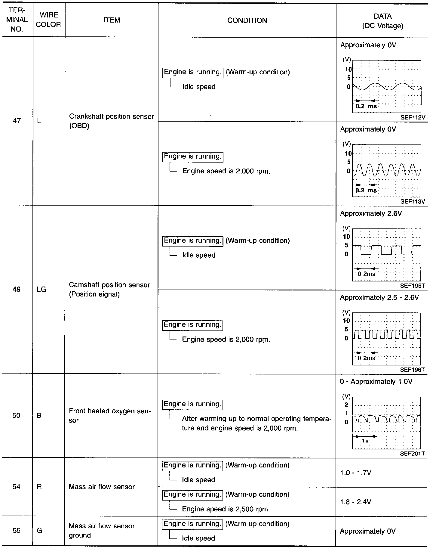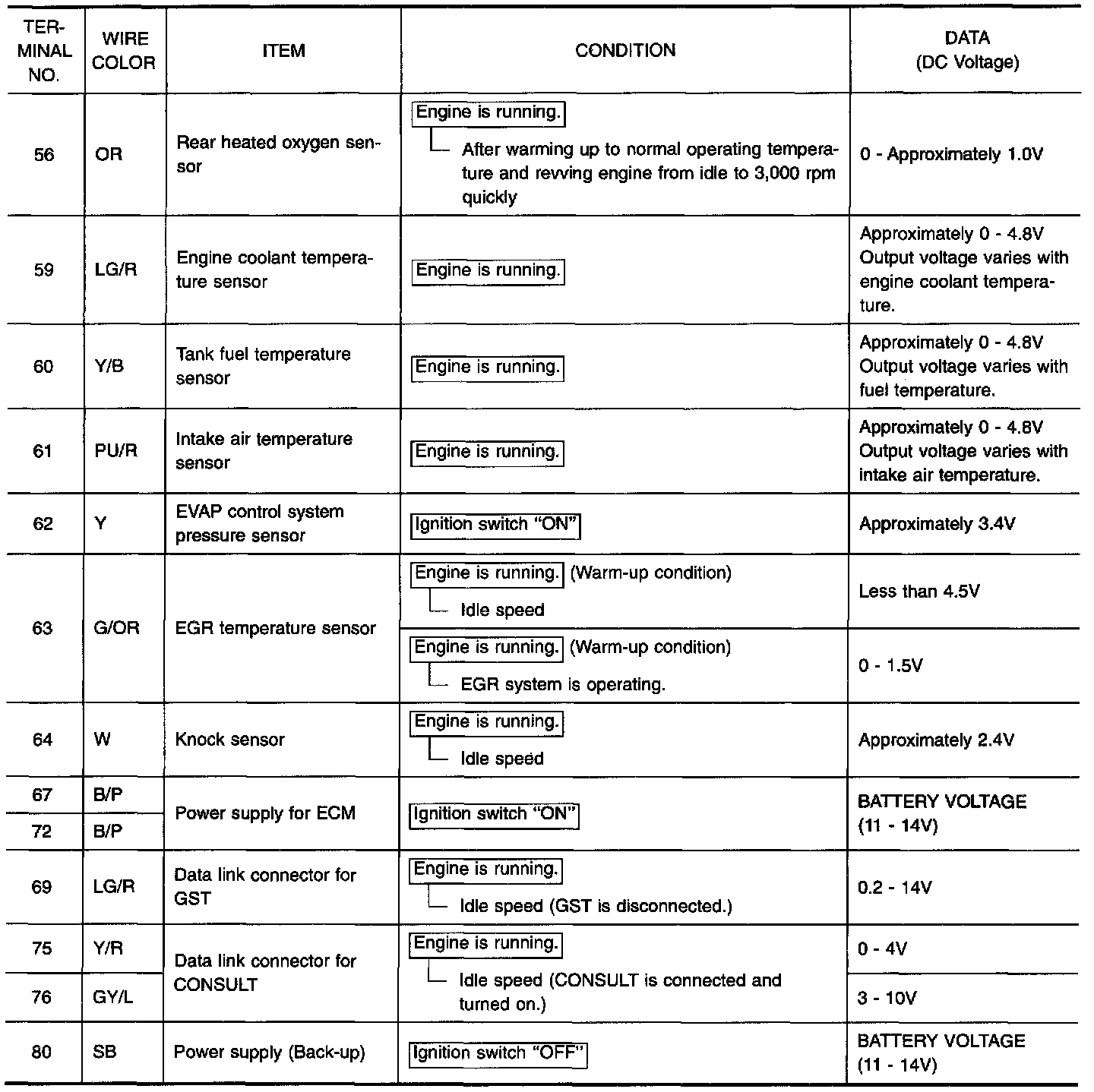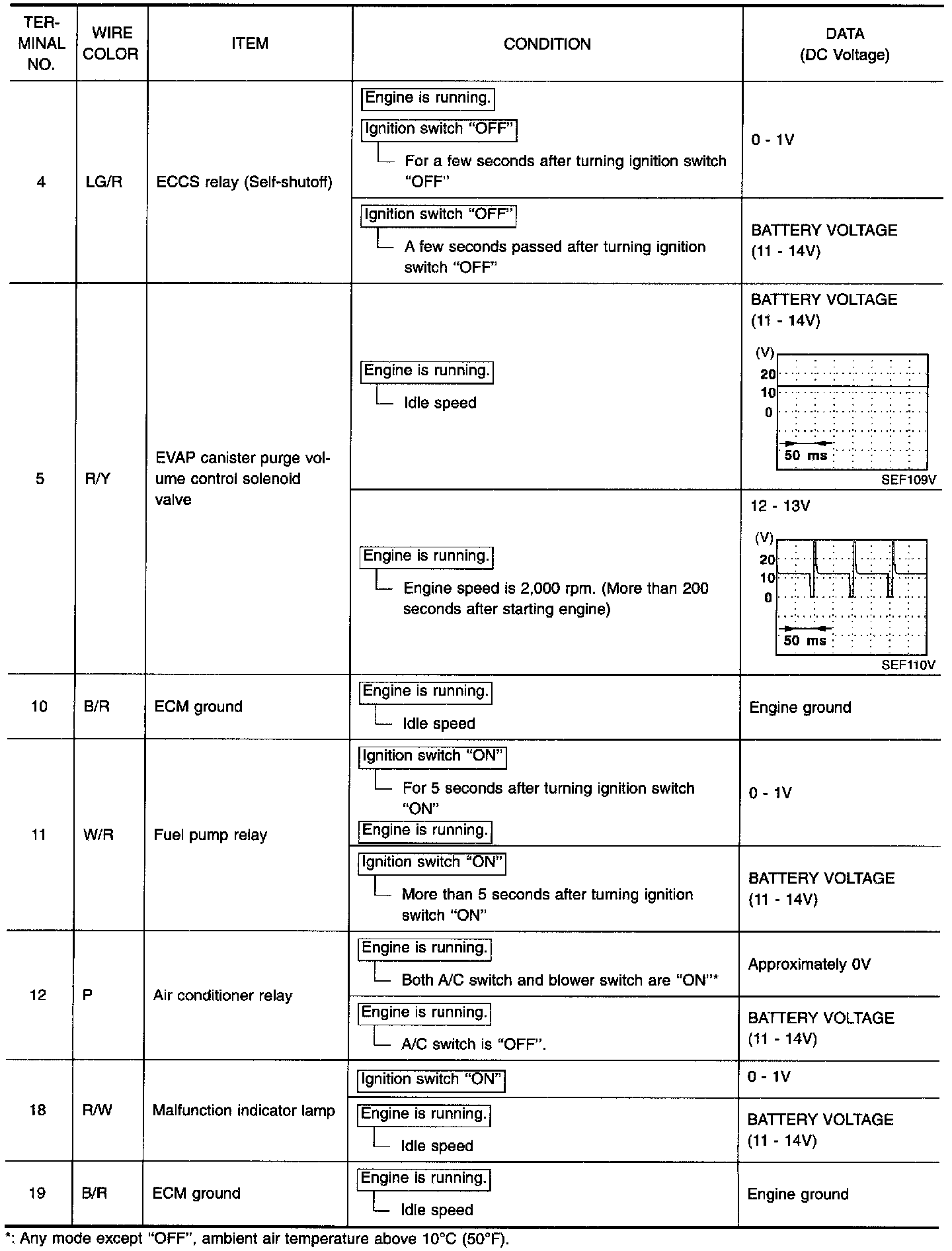Specification data are reference values and are measured between each terminal and (32) (ECM ground).