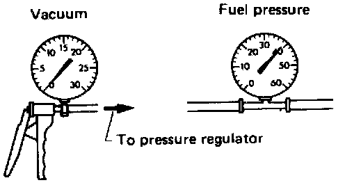 4. Start engine and read indication of fuel pressure gauge as vacuum is changed.
