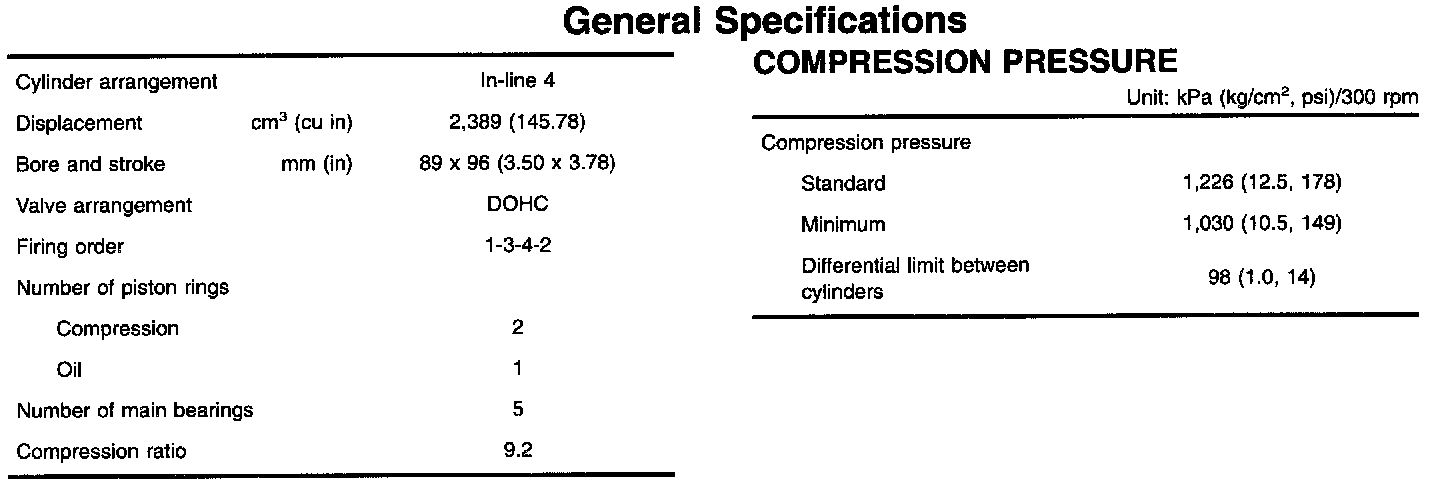 GENERAL ENGINE SPECIFICATIONS