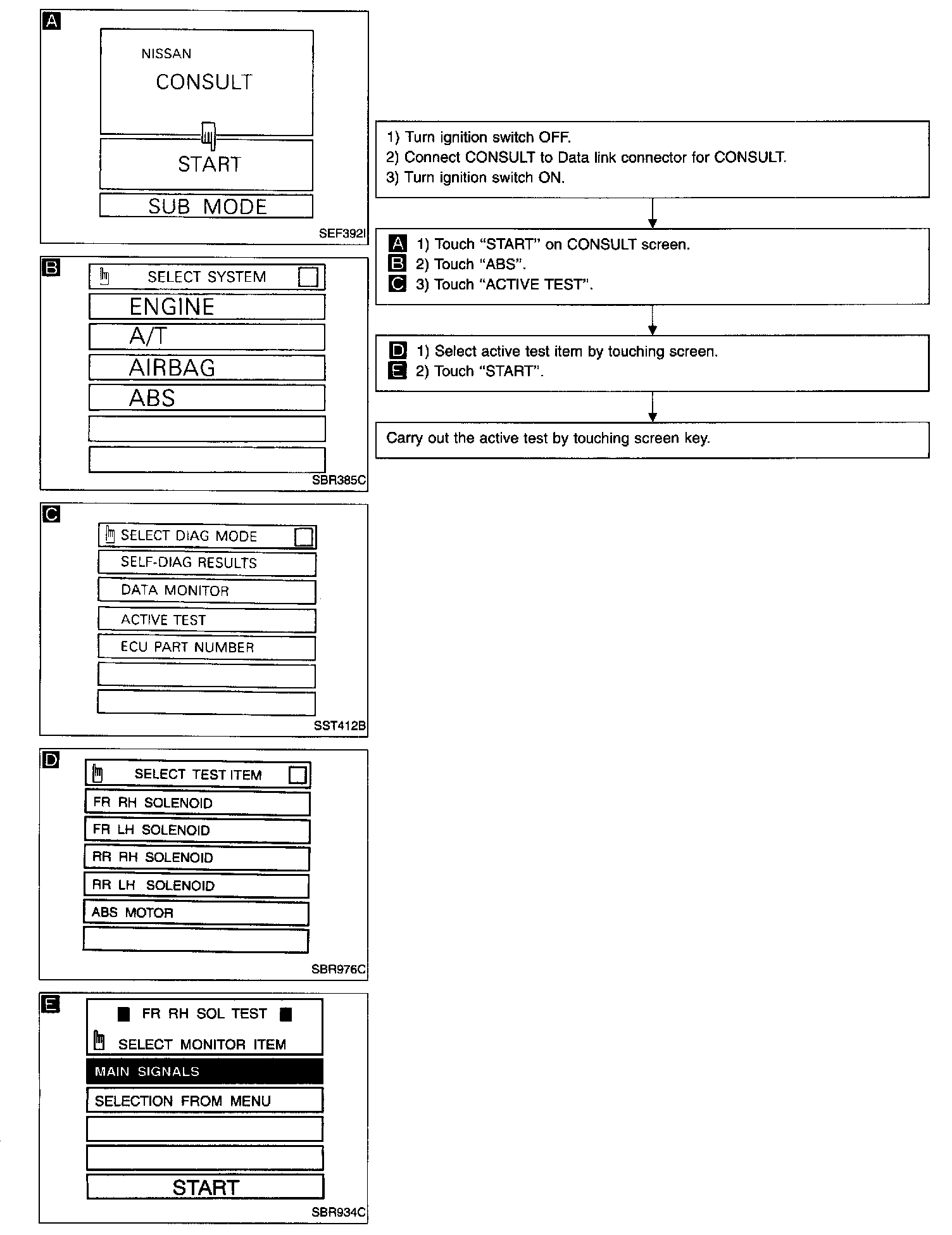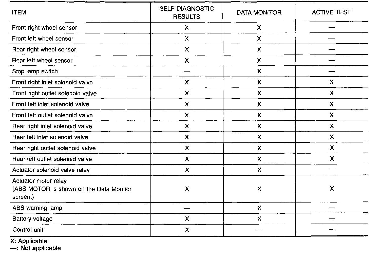 - When Anti-lock Brake System (ABS) warning lamp stays on, never conduct Active Test.