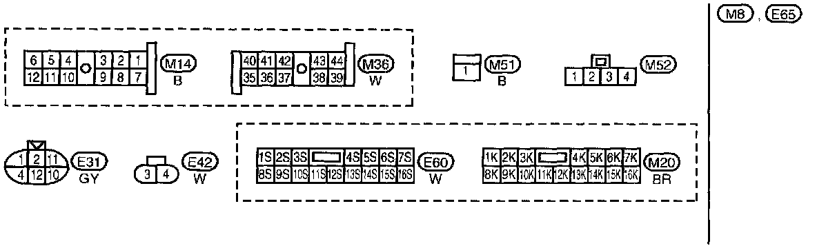 M8, E65 Main Harness And Engine Room Harness Terminal Arrangement