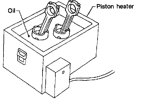 - To disassemble piston and connecting rod, first remove snap, rings. Heat piston to 60 to 70°C (140 to 158°F) then use piston pin press to remove pin.