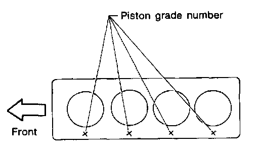 - If cylinder block and piston are replaced, match piston grade with grade number on cylinder block surface.