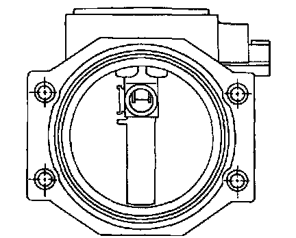 The mass air flow sensor is placed in the stream of intake air. It measures the intake flow rate by measuring a part of the entire intake flow. It consists of a hot film that is supplied with electric current from the ECM. The temperature of the hot film is controlled by the ECM a certain amount. The heat generated by the hot wire is reduced as the intake air flows around it. The more air, the greater the heat loss.