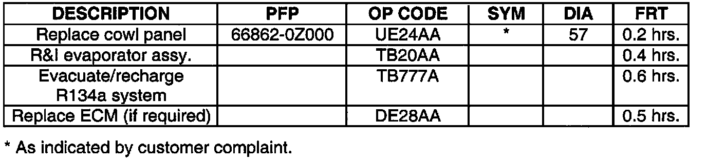 Such debris can enter the A/C air intake duct through openings in the cowl top cover. To prevent debris from entering the A/C system, new cowl top covers are now available. The new cowl top covers have foam seals (mounted on their underside) that keep debris away from the A/C air intake duct.