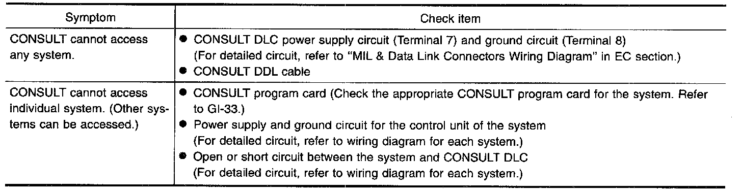If the CONSULT cannot diagnose the system properly, check the following items.