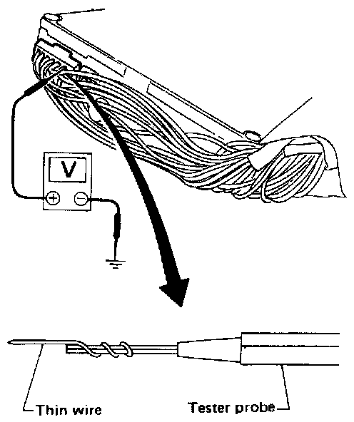 3. Perform all voltage measurements with the connector connected. Extend tester probe as shown to perform tests easily.