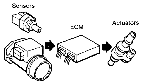 The engine has an ECM to control major Systems such as fuel control, ignition control, idle air control system, etc. The ECM accepts input signals from sensors and instantly drives actuators. It is essential that both input and output signals are proper and stable. At the same time, it is important that there are no problems such as vacuum leaks, fouled spark plugs, or other problems with the engine.