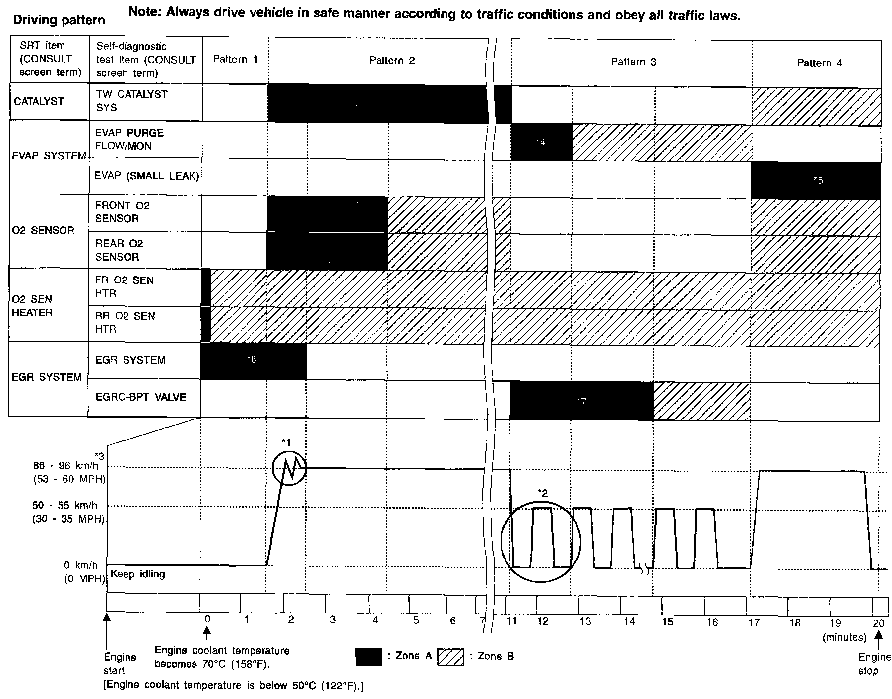 *6 : The driving pattern may be omitted when all the followings are performed using the "DTC WORK SUPPORT" mode with CONSULT.