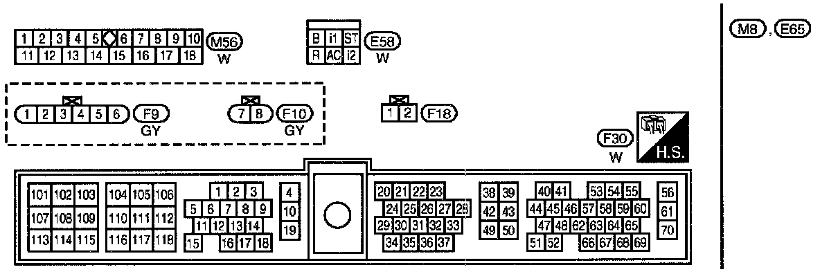 M8, E65 Main Harness And Engine Room Harness Terminal Arrangement