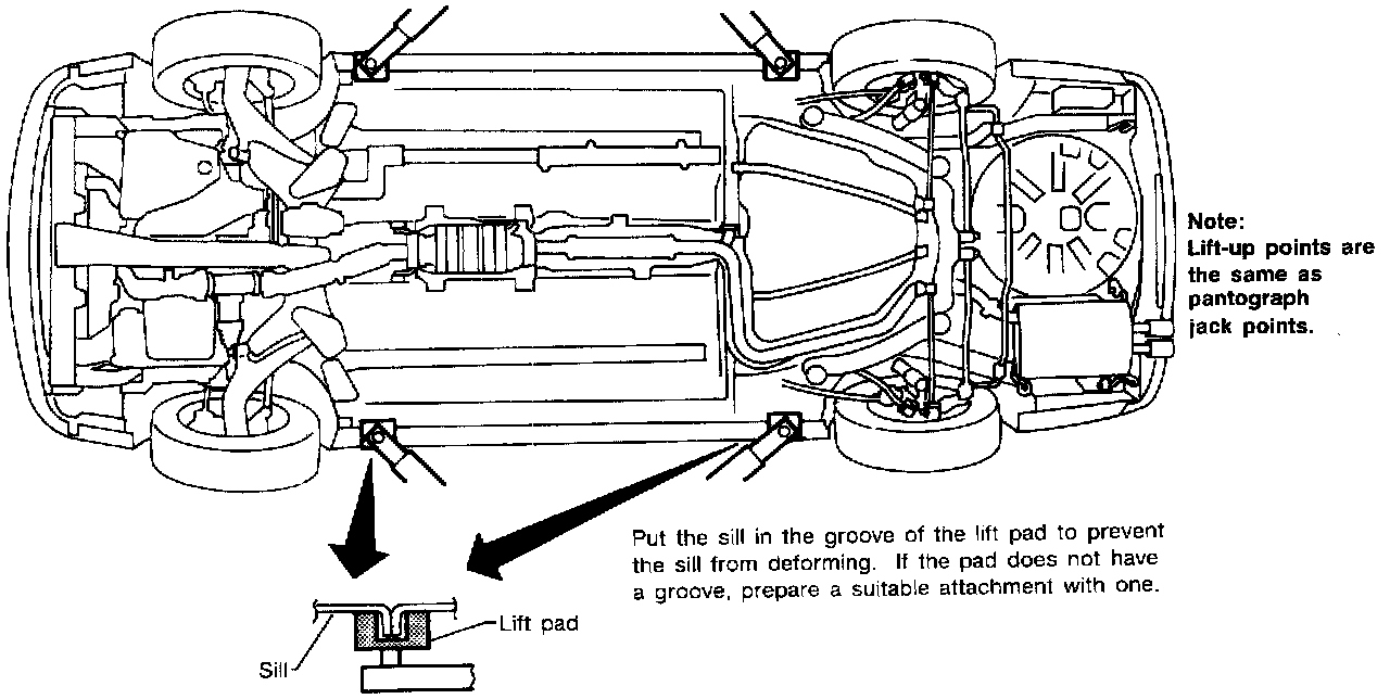 WARNING: When lifting the vehicle, open the lift arms as wide as possible and ensure that the front and rear of the vehicle are well balanced.