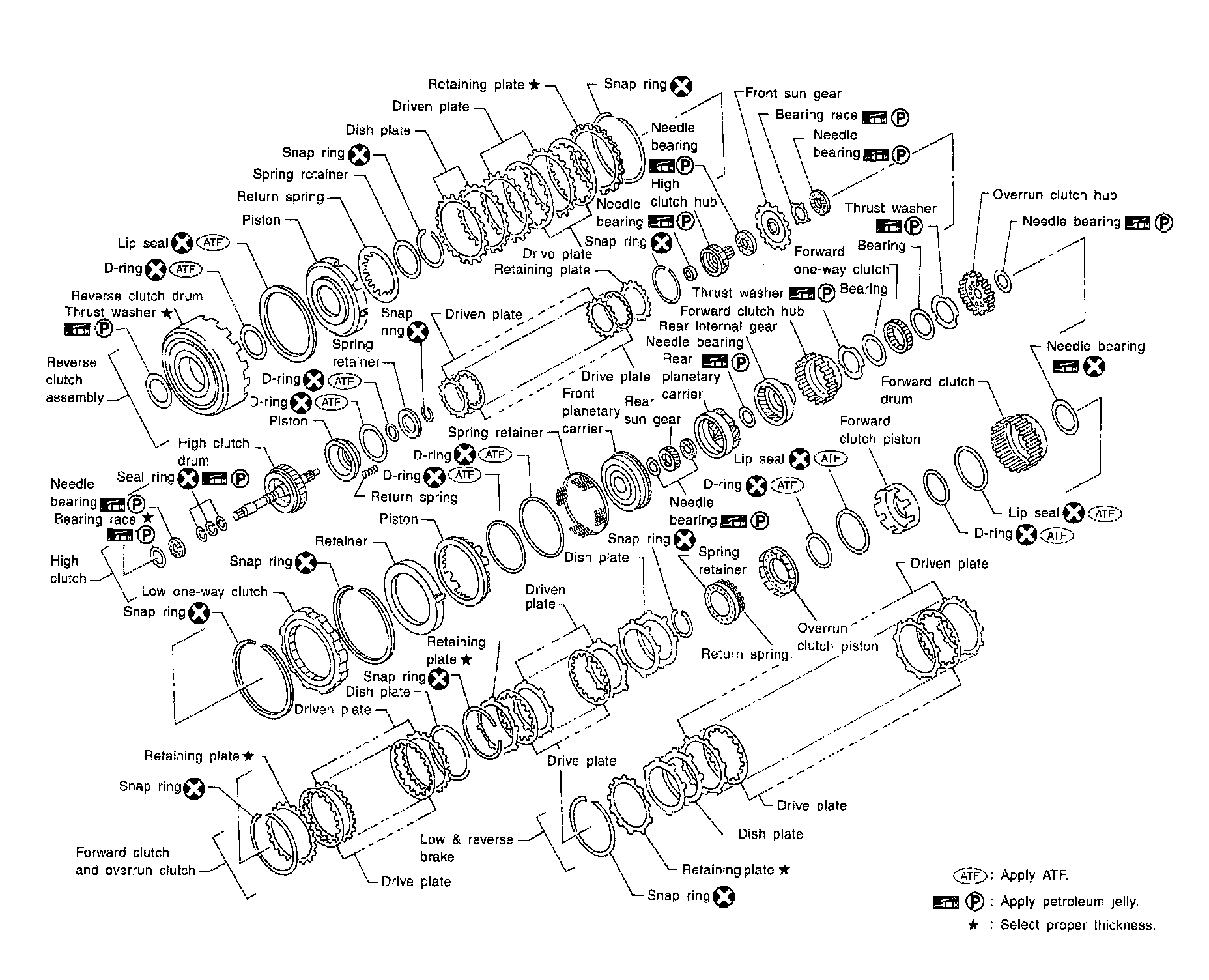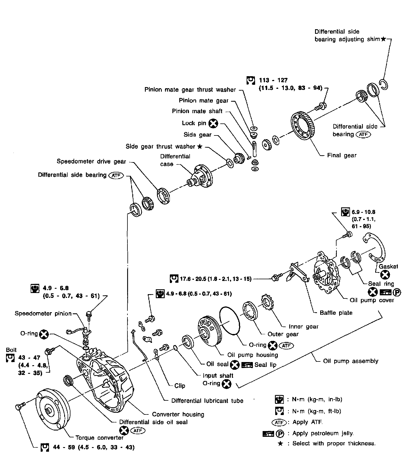 Locations of Adjusting Shims, Needle Bearings, Thrust Washers and Snap Rings