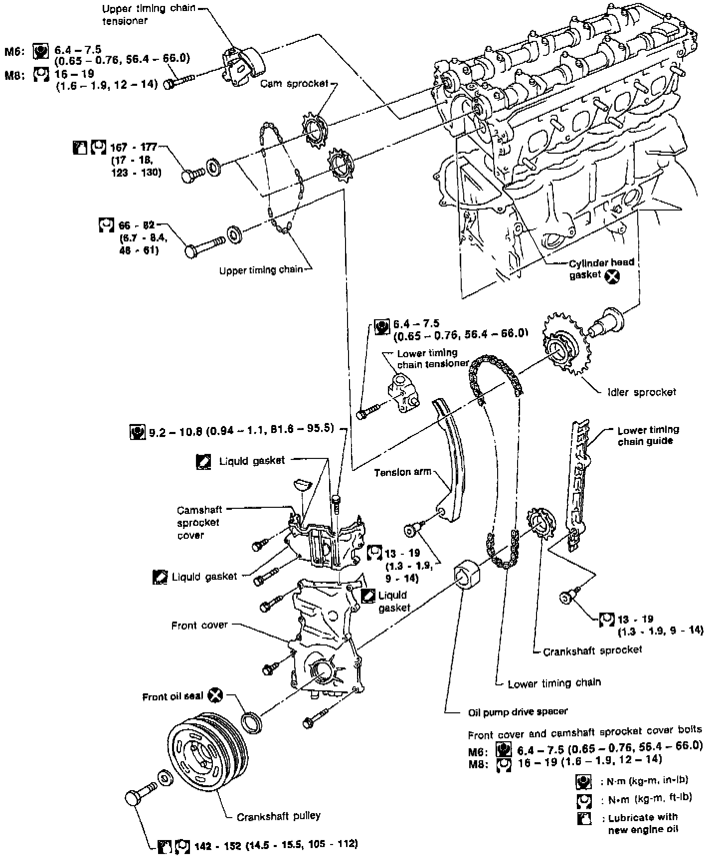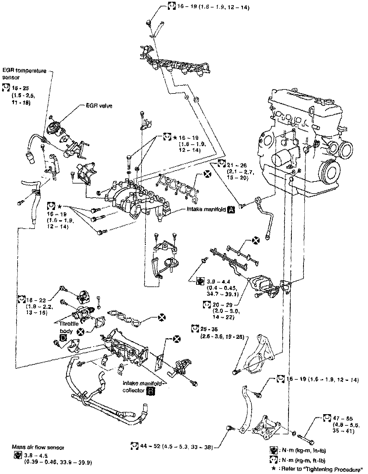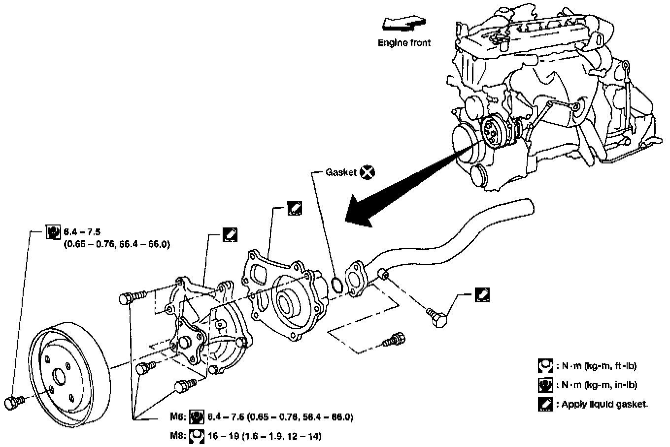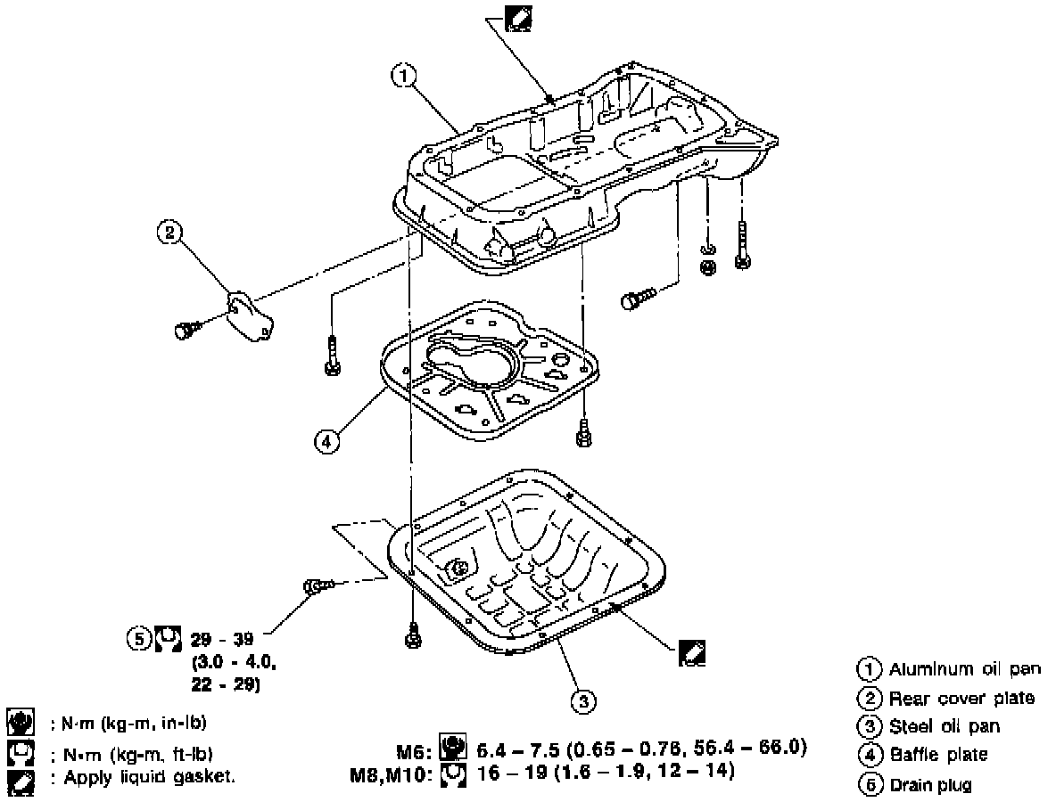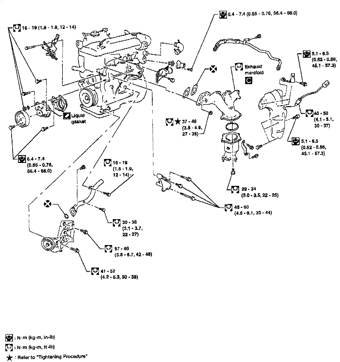 1. Tighten to 14 to 16 Nm (1.4 to 1.6 kg-m, 10 to 12 ft. lbs.)