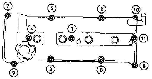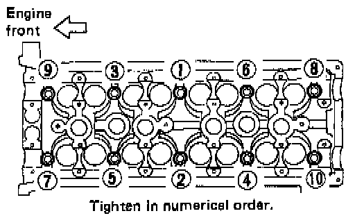 Tighten cylinder head bolts in the order shown using the following procedure:
