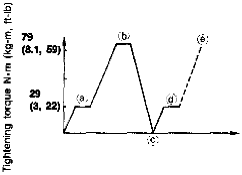 b. Tighten all bolts to 79 Nm (8.1 kg-m, 59 ft. lbs.).
